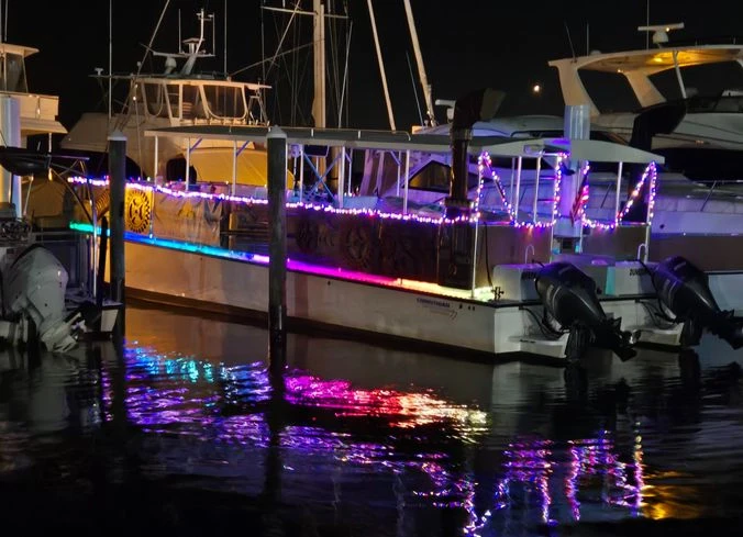 We’ll depart from Joe’s Dockside Marina and start the evening with a relaxing ride to take in the stunning Fort Myers Beach sunset. Afterward, we’ll make our way to Salty Sam’s Marina to join the start of the **37th Annual Fort Myers Beach Christmas Boat Parade**—a festive procession of brilliantly decorated boats, glowing lights, and holiday cheer. This BYOB charter offers comfortable seating, an onboard bathroom, and a fun island-style atmosphere, making it the perfect way to celebrate with family and friends.